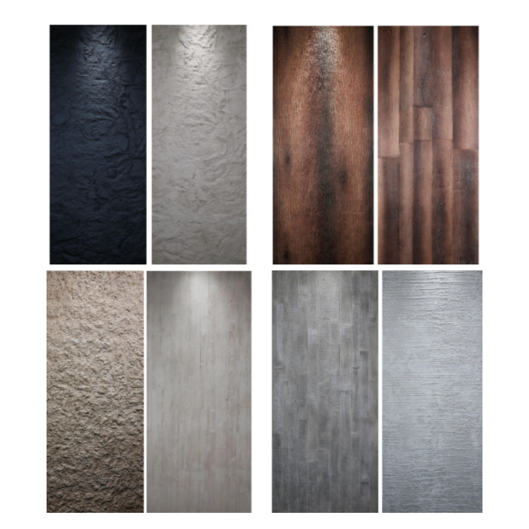 texture, flame retardant, waterproof, good decorative performance, simple and quick installation advantages, greatly shorten the installation period, while saving cost, not only can be used outdoors, but also by many excellent designers in the indoor, to create a natural space.